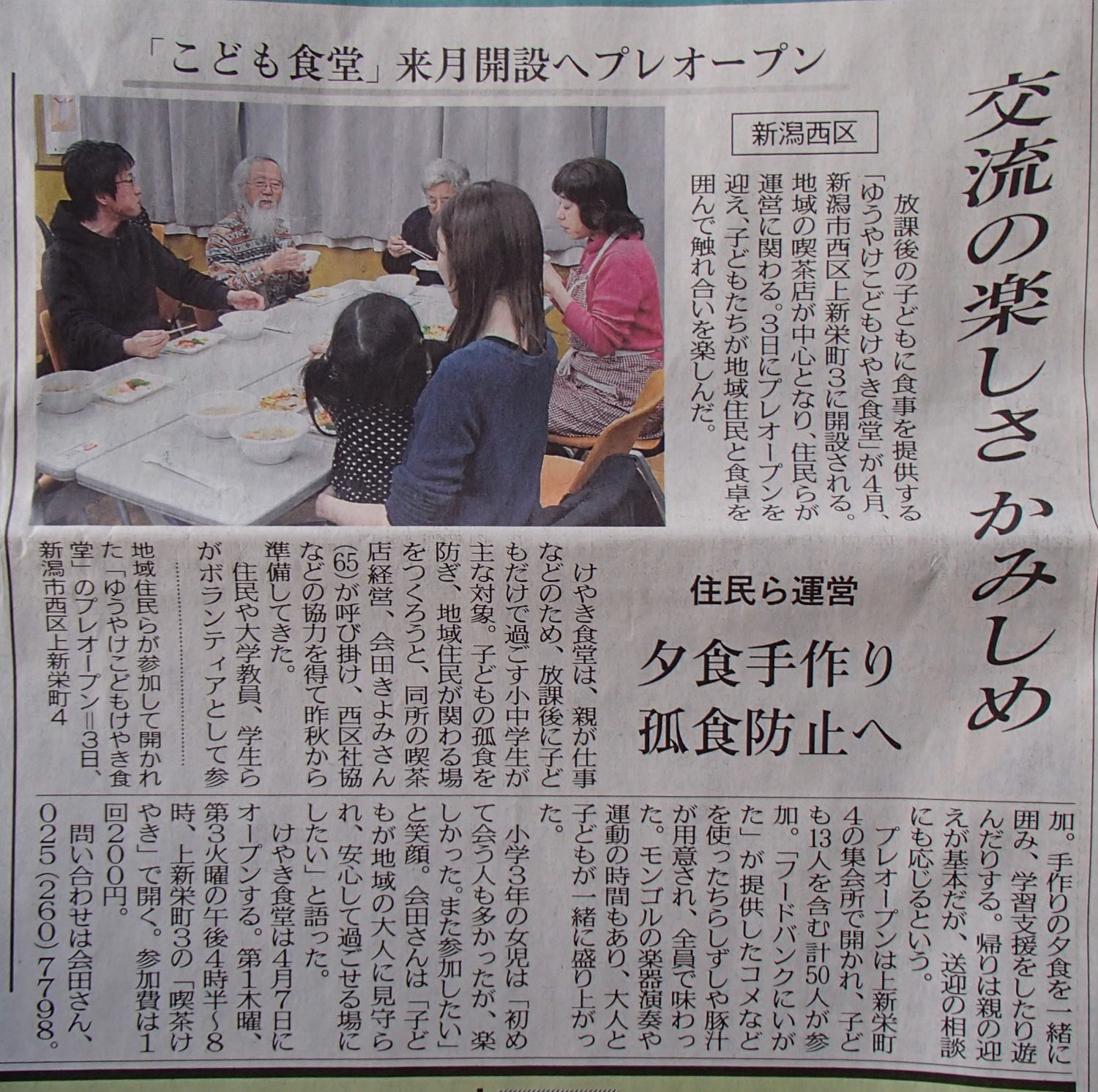 4月、新潟市西区に「ゆうやけこどもけやき食堂」がオープンします。