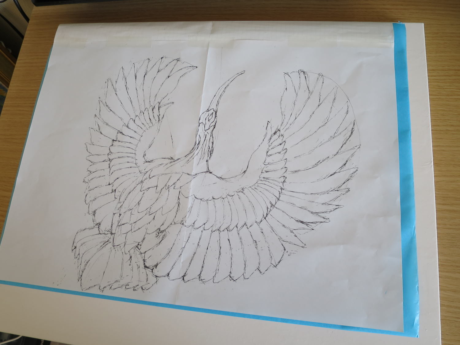 ちなみにこの下絵は、トレーシングペーパーに描いたものをA3版用紙へ拡大コピーしたものです。