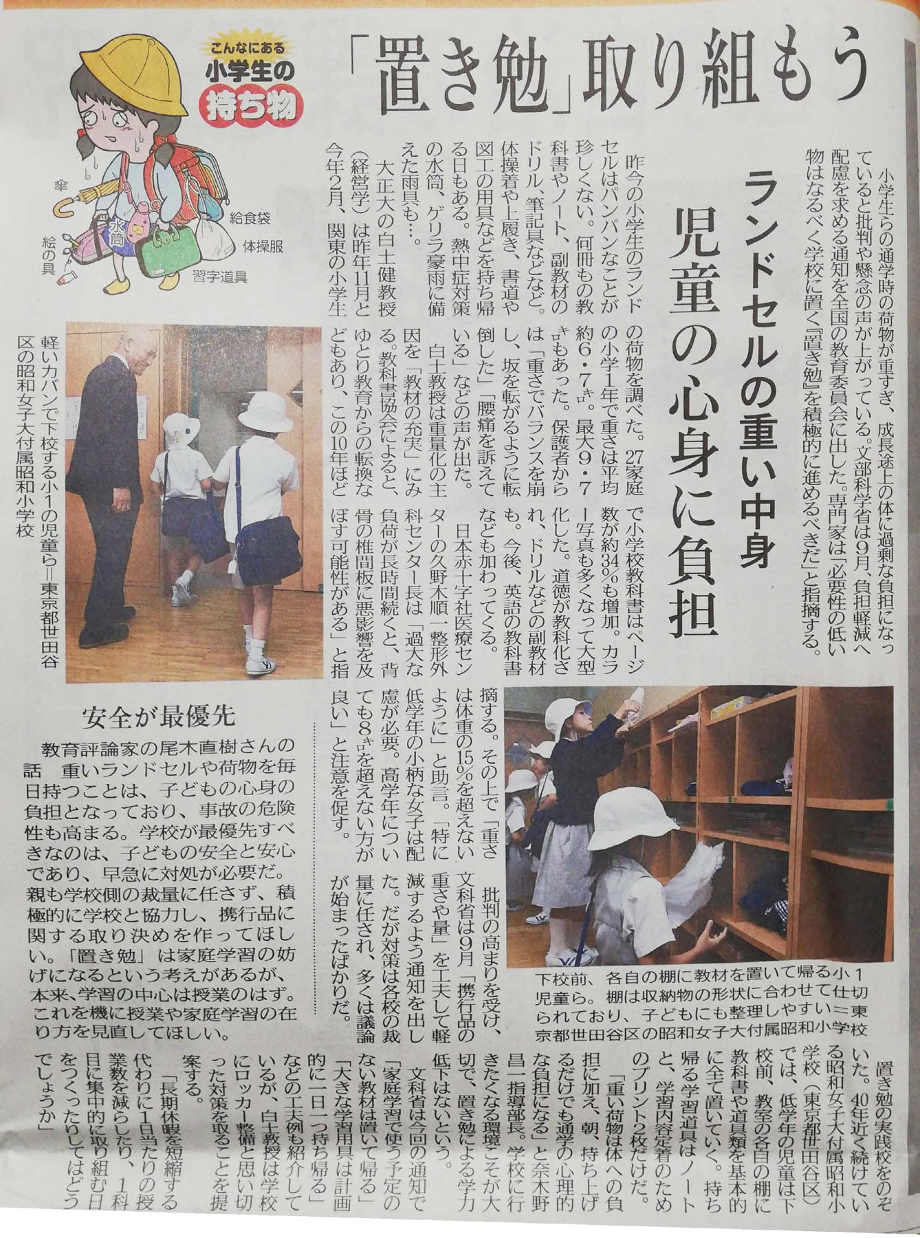 必要なもの以外は学校に置いていくというのは、非常によいことだと思います。