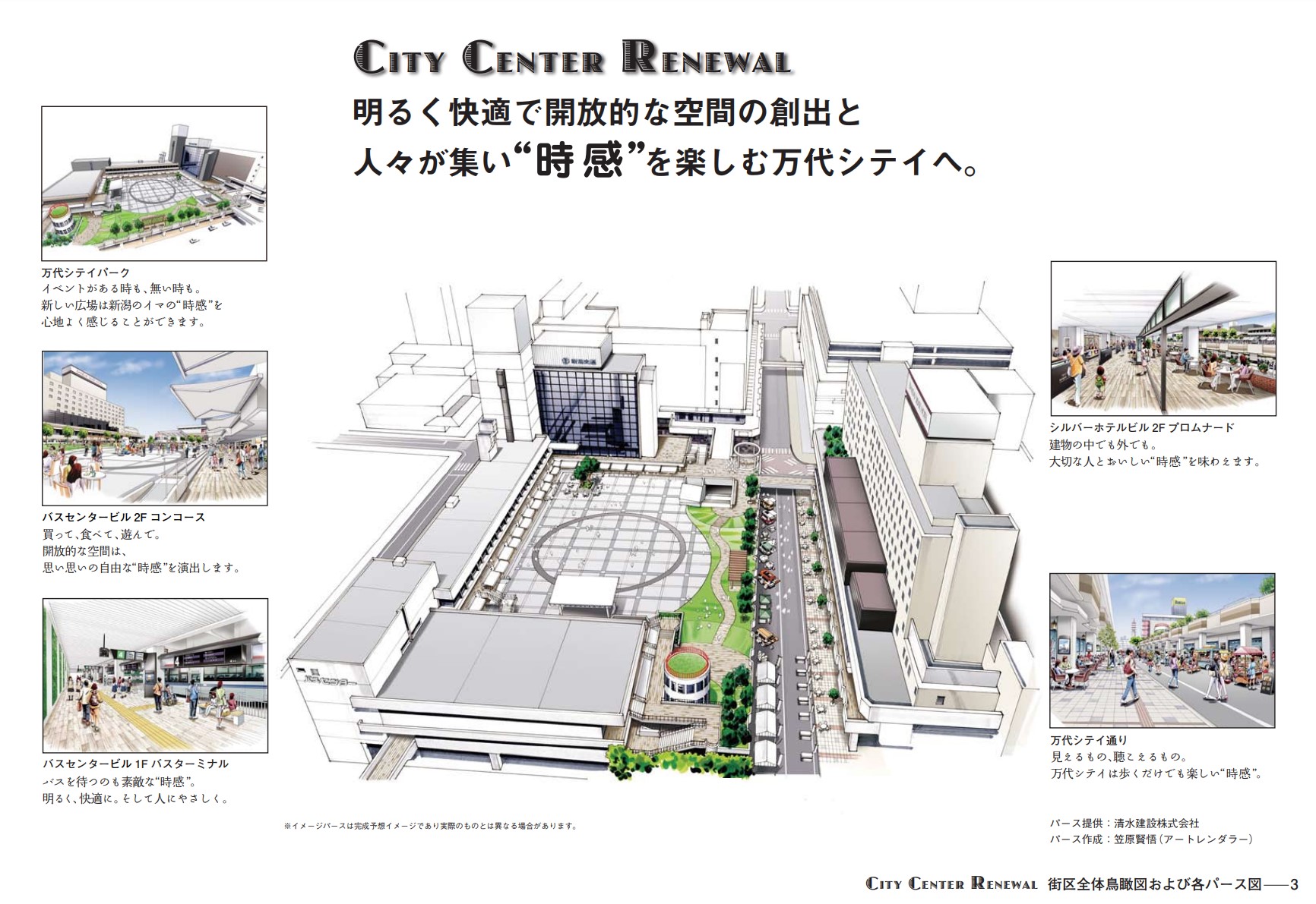 2019年4月より、バスセンタービルとシルバーホテルビルに囲まれた万代シテイの中心エリアはリニューアルを実施します。