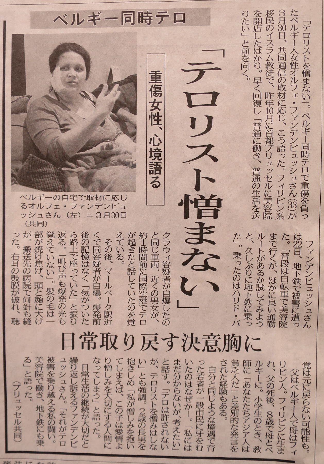 ベルギー同時テロで重症を負った女性が取材に応じ、こう語りました。